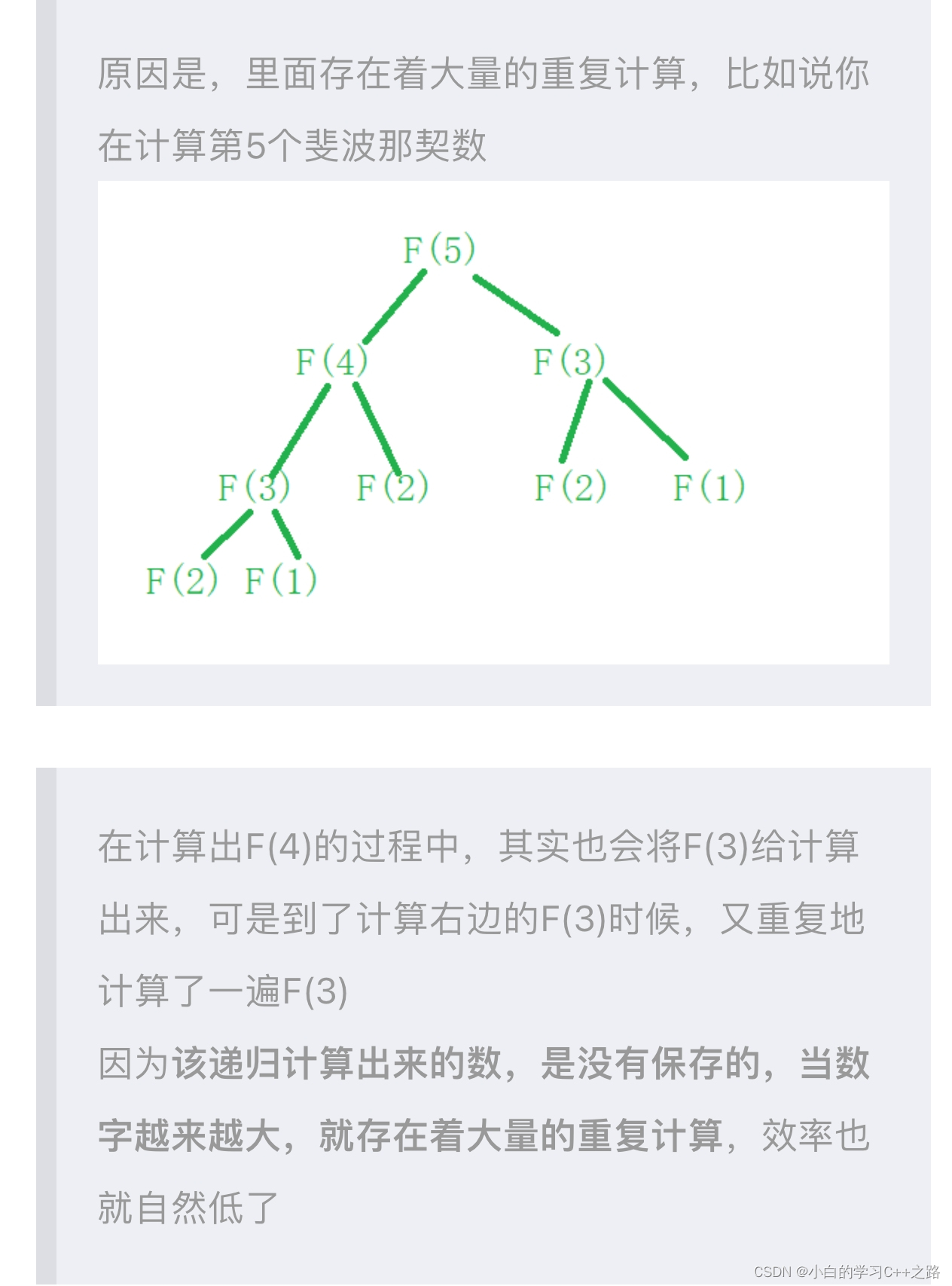 缺点:需要计算的式子很多很多,容易栈溢出,时间复杂度非常高;