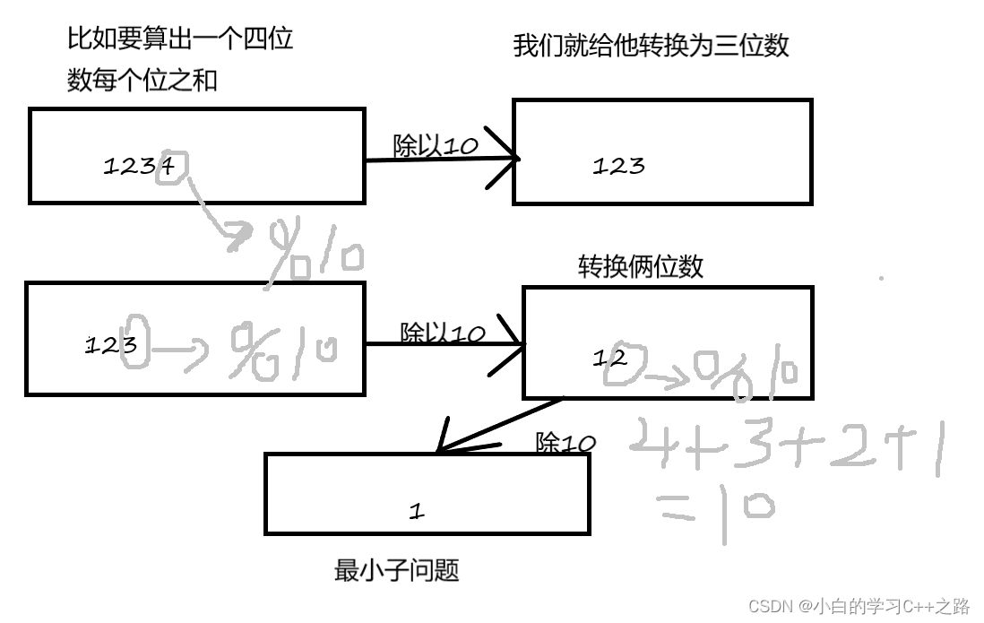 1.递归循环输出一个数的每一位之和