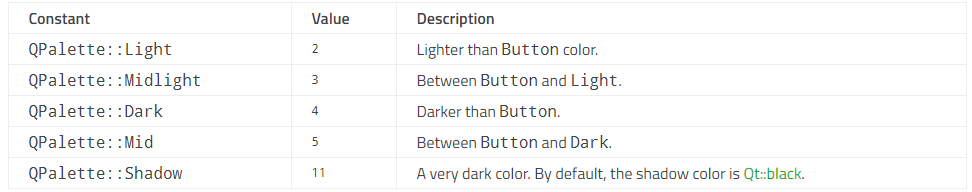 (3) void QPalette::setColor ( ColorRole role, const QColor & color )