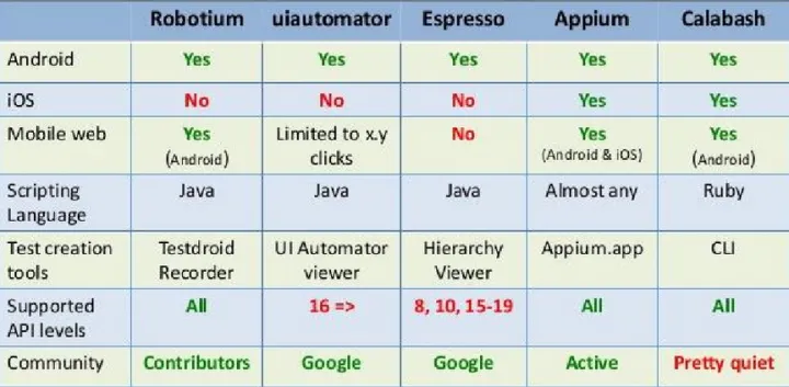 而且,Appium不仅支持安卓还支持iOS,所以在这里,我们应该选择学习Appium最能满足市场的需要。