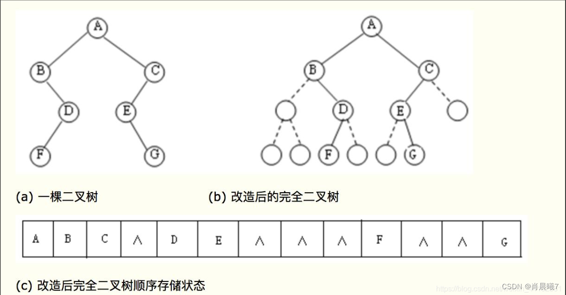 顺序结构存储就是使用数组来存储,一般使用数组只适合表示完全二叉树,因为不是完全二叉树会有空间的浪费。而现实中使用只有堆才会使用数组来存储,关于堆我们后面的文章会专门讲解。二叉树顺序存储在物理上是一个数组,在逻辑上是一个二叉树。