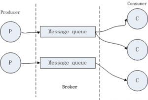 在消息中间件中,常见的角色大致包括Producer(生产者)、Consumer(消费者)、Broker(中转角色),典型的应用模型如下图所示:
