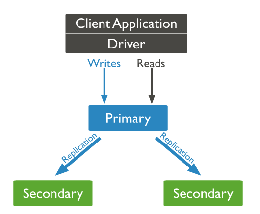 主节点接受所有的写操作,并通过自己的数据操作日志记录数据集的所有变化,客户端可以通过读次节点的数据集提高数据读性能。次节点同步拷贝主节点的操作日志,并将数据操作应用到自身的数据集中。如果主节点变的不可用,将从剩余的次节点中选举出新的主节点,