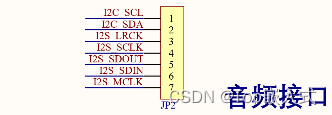 其中音频接口用于解码音频数据然后播放声音,这里使用IIS与音频芯片进行通信,在主控板上设计出IIS接口用于与音频芯片进行通信:
