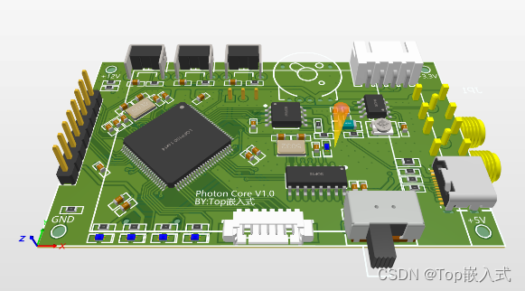 设计完原理图后,对主控进行PCB设计,PCB设计三维图如下: