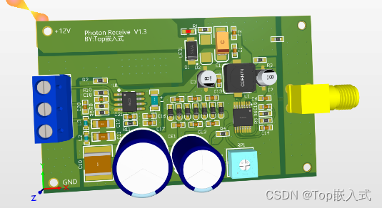 设计完成原理图后使用AD设计PCB,最终PCB模型如下: