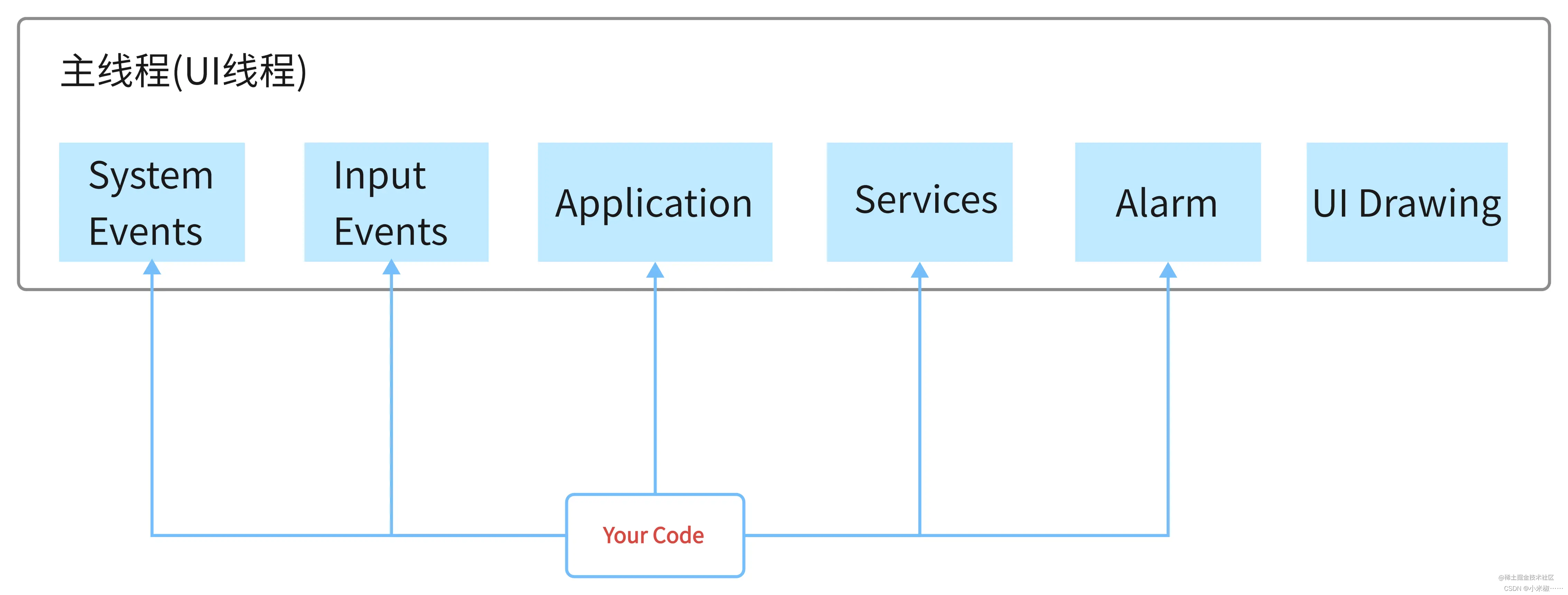 而 UI绘制 虽然是在主线程中的,但是我们的代码是无法去控制它的,这是系统进行控制的。我们只能输入需要绘制什么,但是不能影响其绘制的流程。