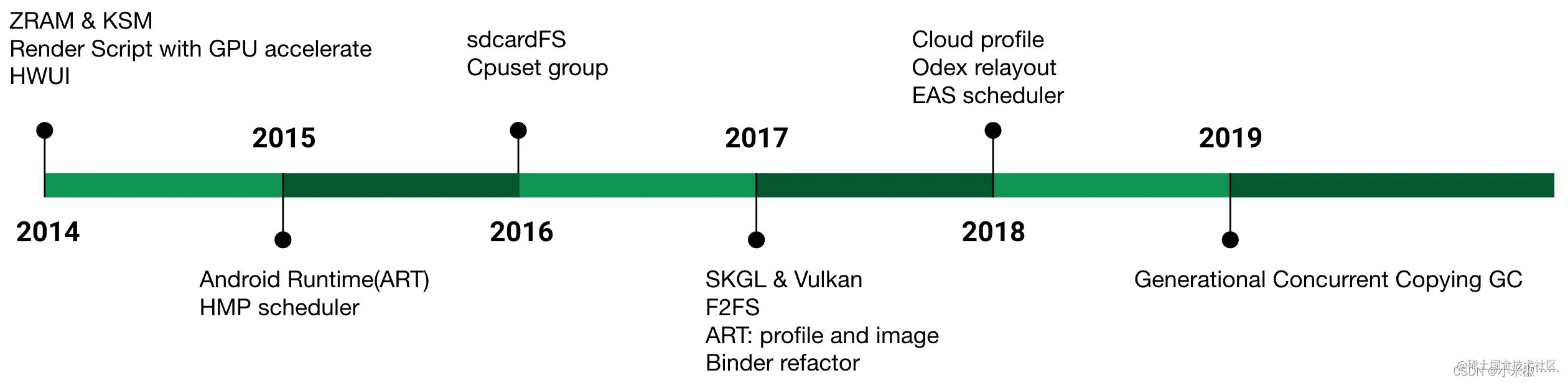 对于 Android 系统,Google 本身也对其系统做了很多重大的优化,这些优化使得 Android 系统很多的问题得以解决,很多使用体验变得更好。而这些优化的点,我们可以作为今后的思路,让我们对 APP 的优化有更广阔的思考,让我们能发掘出更多的优化点和对其有更加深刻的思考