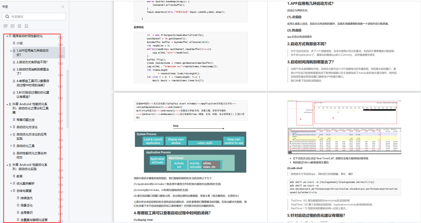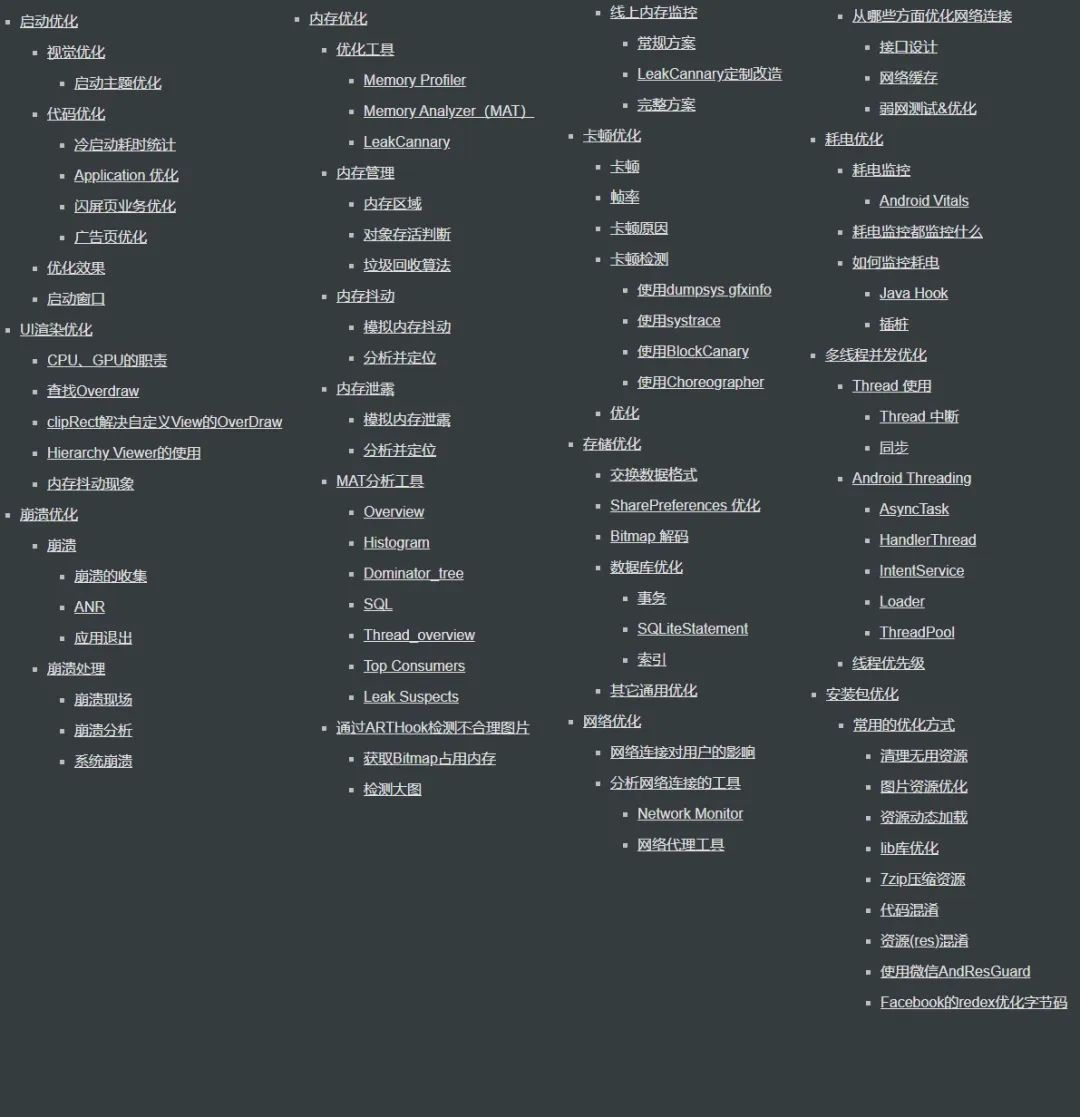 刚好近期梳理性能优化相关知识时,随手对这块知识点进行整理:(内存优化、UI优化、网络优化、Bitmap优化、图片压缩优化、多线程并发优化、数据传输效率优化、启动优化、耗电与体积包优化),还有性能框架与Framework相关知识点,有需要的可以 直接点击↓↓↓此处 即可获取进行参考学习!!!