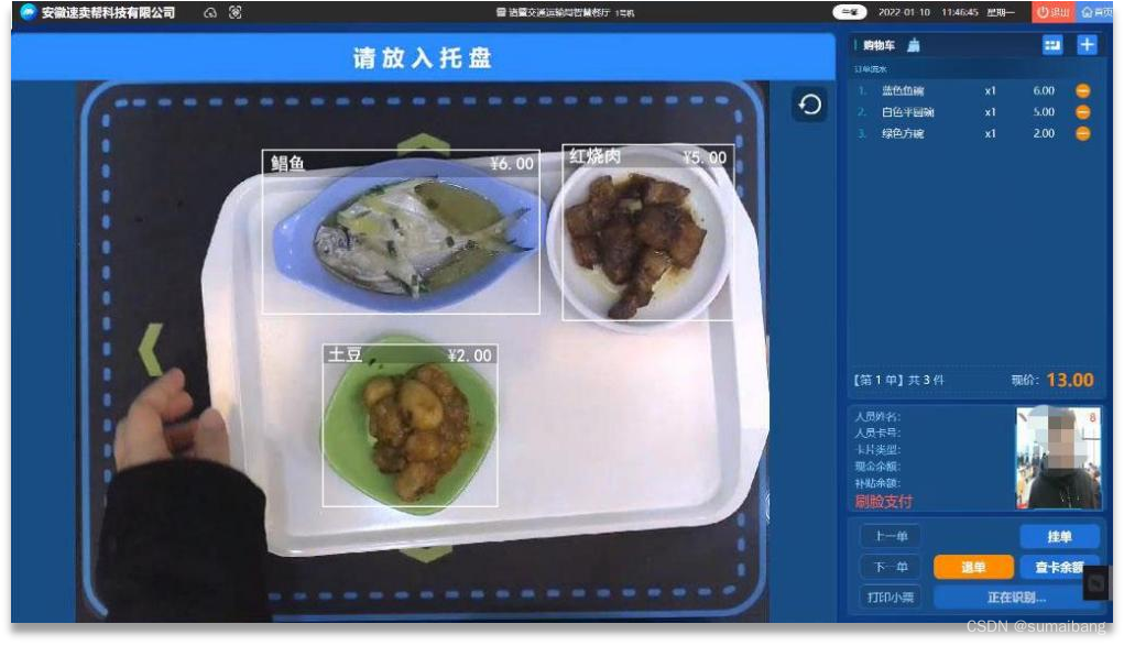 智仕通视觉识别结算台配置AI图像识别系统,不仅能自动识别菜品信息,而且对餐具没有特别要求,切实可行的做到降本增效。