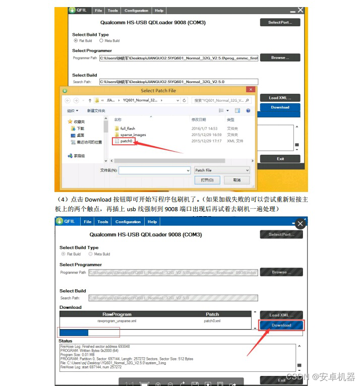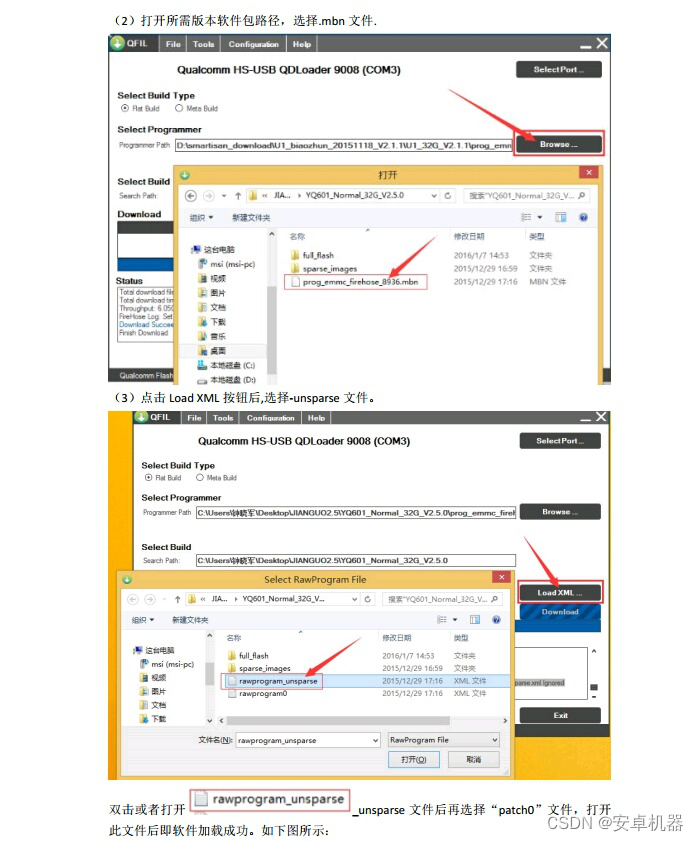 以上图就是qpst的刷机步骤与方法。还有一种方法加载的脚本不同。具体要看固件包是否正常 类似