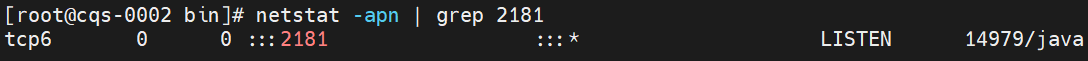 输入以下命令,检查端口2181是否被占用