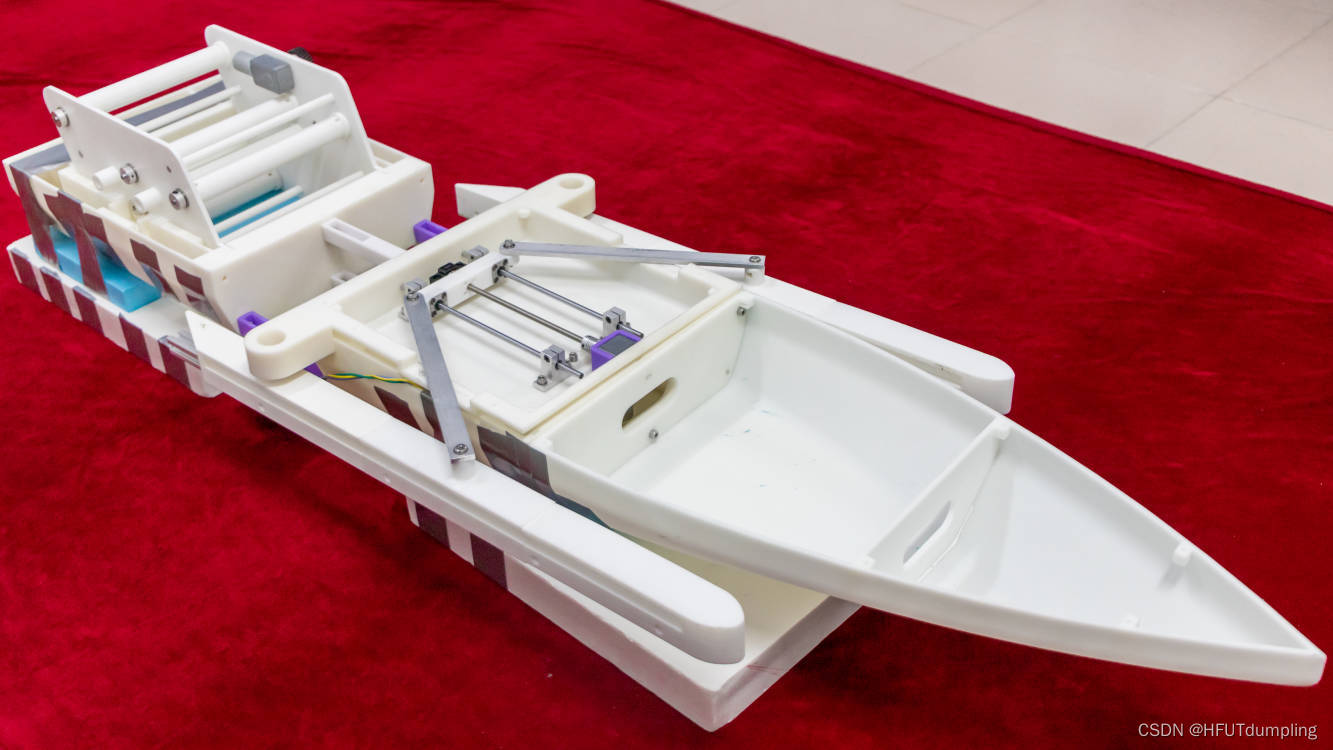 OSBoat,取名灵感来自于美国Argonne National Laboratory团队Oleo Sponge新型海绵。该种海绵具有良好的疏水亲油性,可实现反复吸油和挤压出油。通过这个海绵的特性,搭载我们的船体,可以实现海上原油的自动清理。我们最初是以机械创新设计大赛的生态修复赛题为导向,开始了这样一个项目的制作。