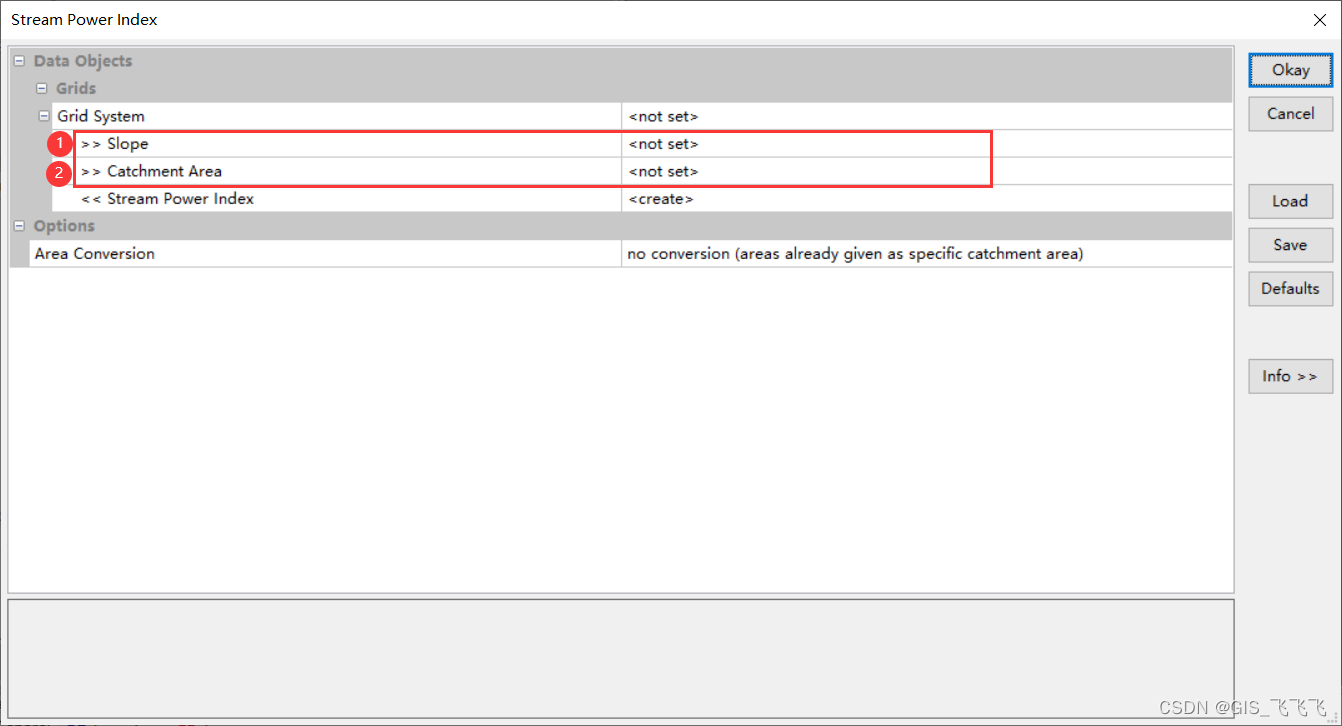 2.1 打开【Terrain Analysis】—【Hydrology】—【Stream Power Index】工具。可以看到需要Slope、Catchment Area两个参数,分别求Slope、Catchment Area。