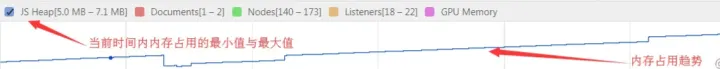 - 某次快照后,看当前内存占用的趋势图,如果走势不平稳,呈上升趋势,那么可以认为存在内存泄漏