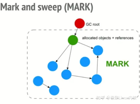 标记清除算法将“不再使用的对象”定义为“无法达到的对象”。 简单来说,就是从根部(在JS中就是全局对象)出发定时扫描内存中的对象。 凡是能从根部到达的对象,都是还需要使用的。 那些无法由根部出发触及到的对象被标记为不再使用,稍后进行回收。