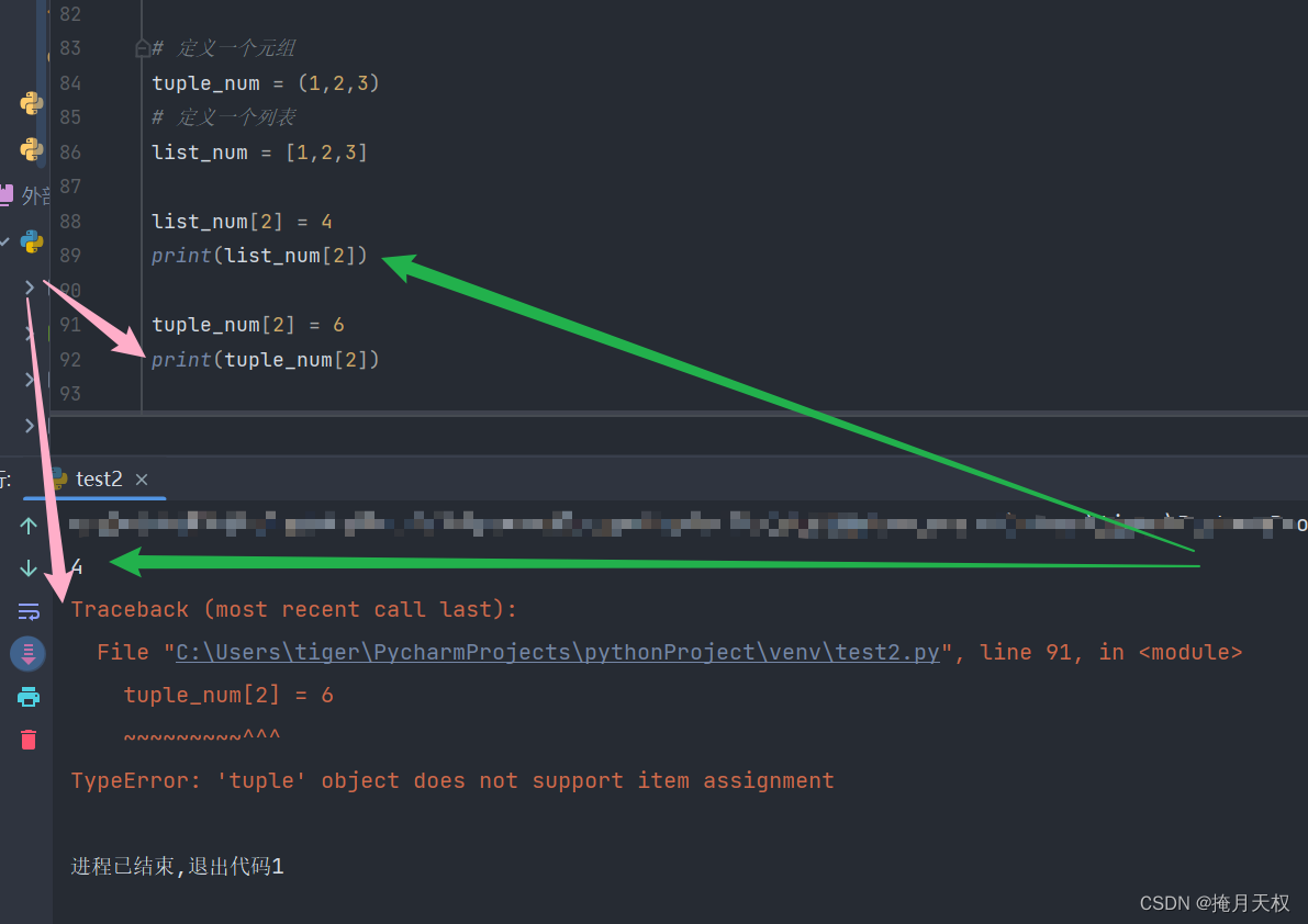 元组中的元素是顺序排列的,可以通过索引访问元组的元素。