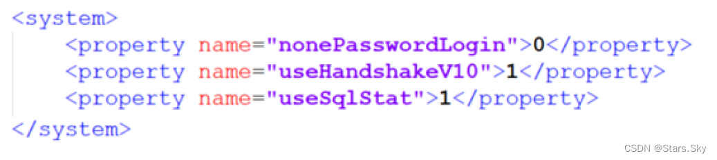 | useHandshakeV10 | 0,1 | 使用该选项主要的目的是为了能够兼容高版本的jdbc驱 动, 是否采用HandshakeV10Packet来与client进行通信, 1:是, 0:否 |