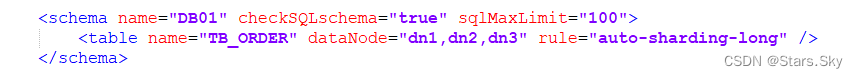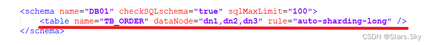<table name="TB_ORDER" dataNode="dn1,dn2,dn3" rule="auto-sharding-long" />