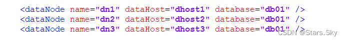 <dataNode name="dn3" dataHost="dhost3" database="db01" />