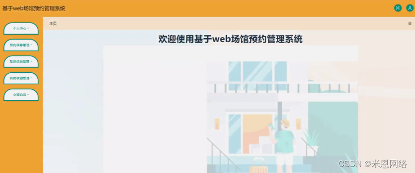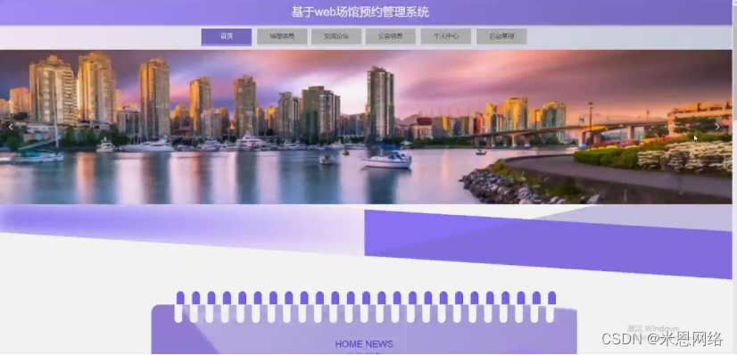 基于web场馆预约管理系统,在网站首页可以查看首页、场馆信息、交流论坛、公告信息、个人中心、后台管理等内容,如图5-1所示。