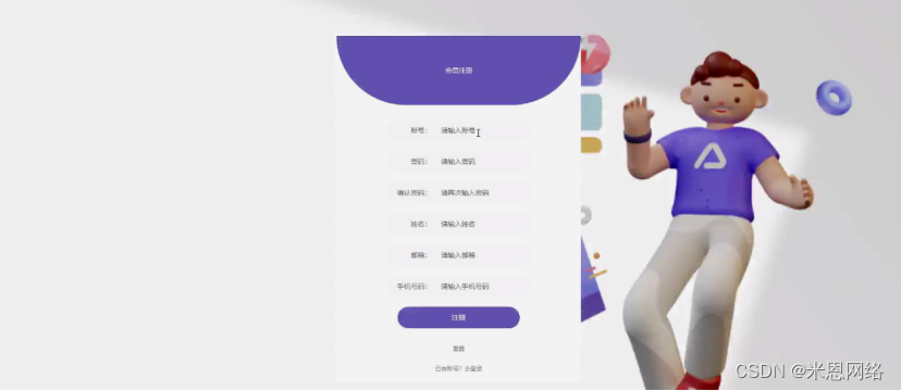 会员注册,会员通过输入账号、密码、姓名、邮箱、手机号码等内容进行注册,如图5-2所示。