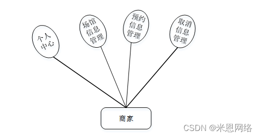 (c)商家进入系统后台可以实现个人中心、场馆信息管理、预约信息管理、取消信息管理等功能。商家用例图如图3-2所示。