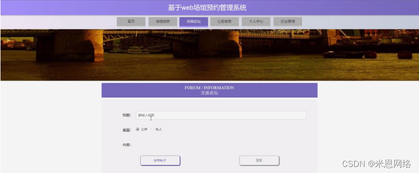 交流论坛,会员可在交流论坛页面通过输入标题、内容、类型等内容进行发布帖子或重置等操作,如图5-5所示。