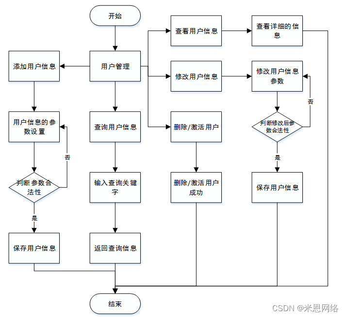 由于不同的系统实际使用用户角色的不同,他们的业务分析也会变得有所不一样,为了论述方便接下来都将以管理员用户功能权限下的系统业务流程来分析,如下图所展示: