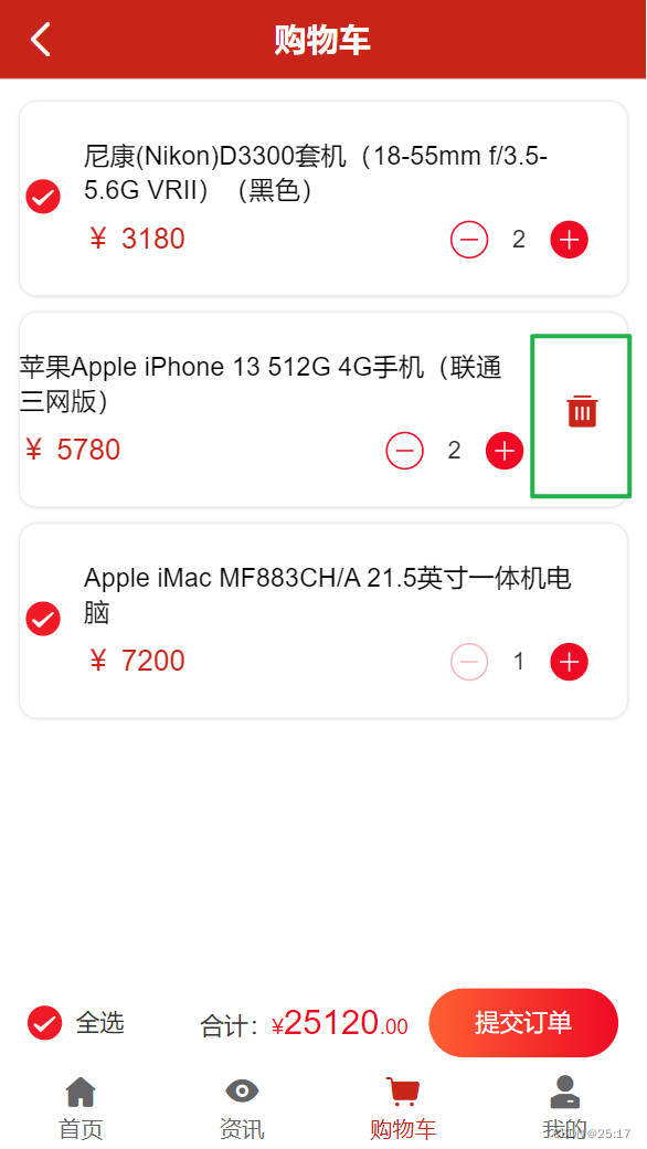 全选+删除单个商品