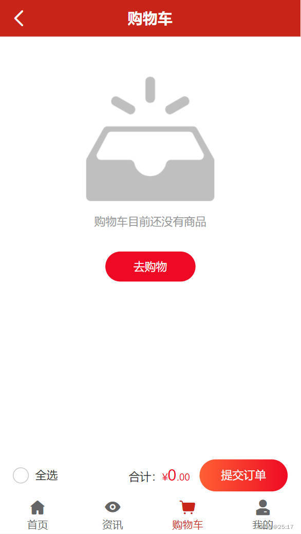 5、调用空状态函数emptyStatus(),如果本地缓存的购物车里没有数据,就显示空状态;