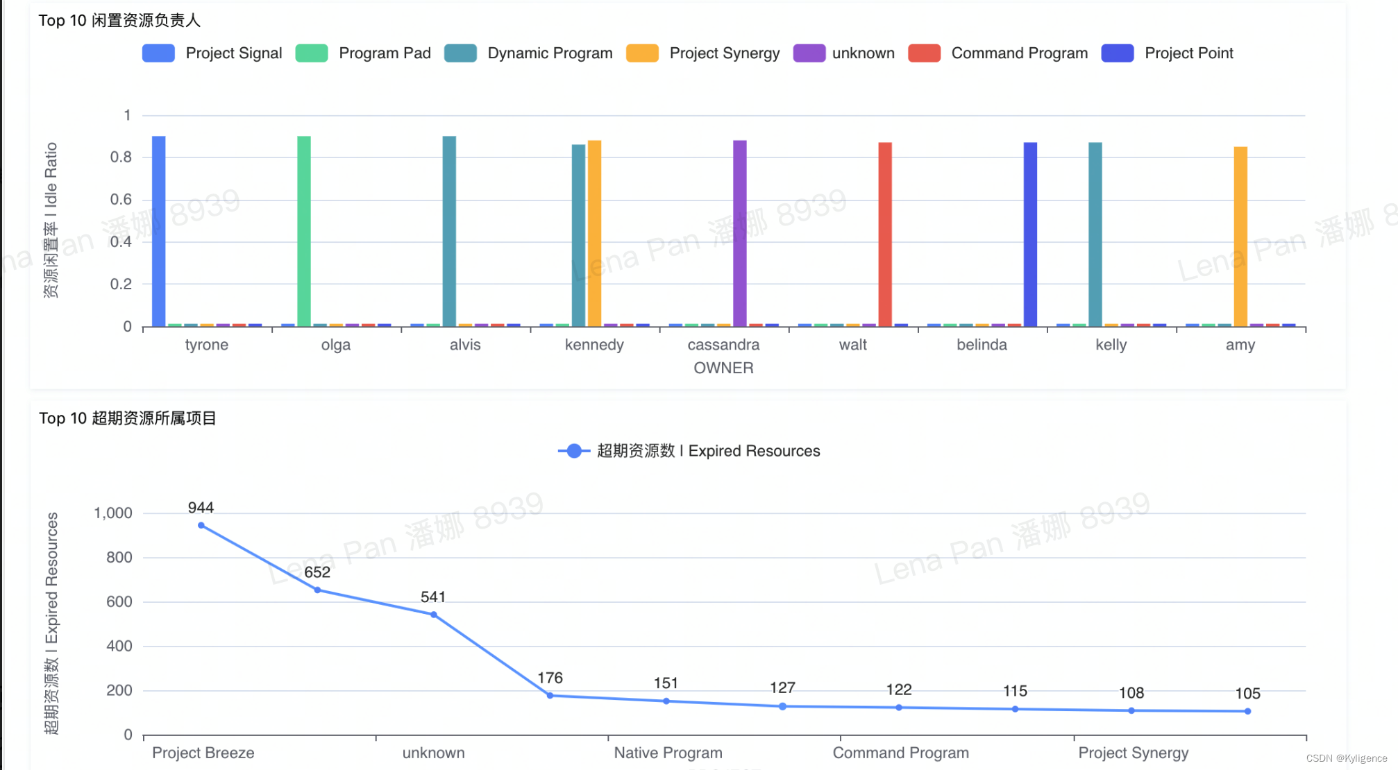 此外,从 Top 10 超期资源所属项目中,可以看到 Project Breeze 项目存在大量的超期资源(944 个),云平台管理员需要及时执行资源清理操作。经测算,仅此一项可帮助企业节省约 20% 云成本,合计近 600 万元的资金。
