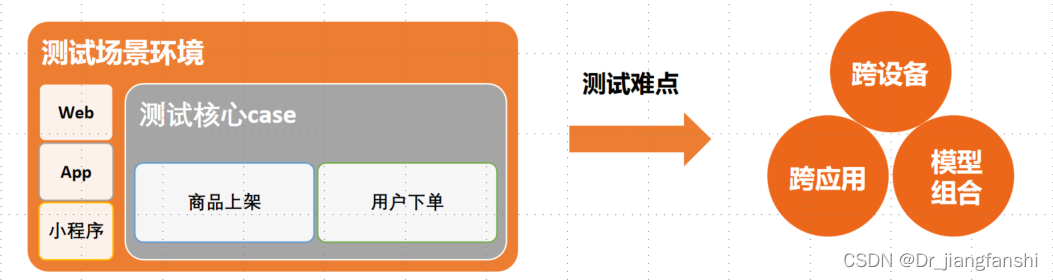 混合场景一向是功能测试难以逾越的高山。商品上架、用户下单是非常经典的混合场景,商户通过web上架,用户通过app下单,如何解决这两者之间的测试联系,是一个很大的难题。