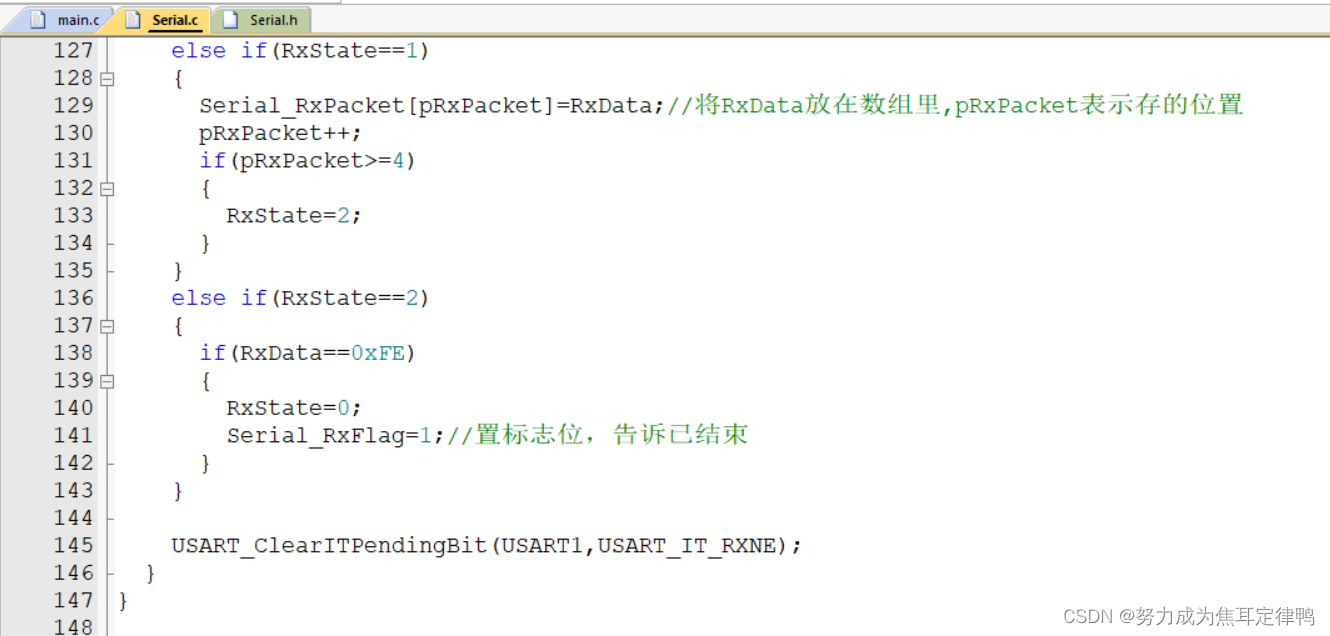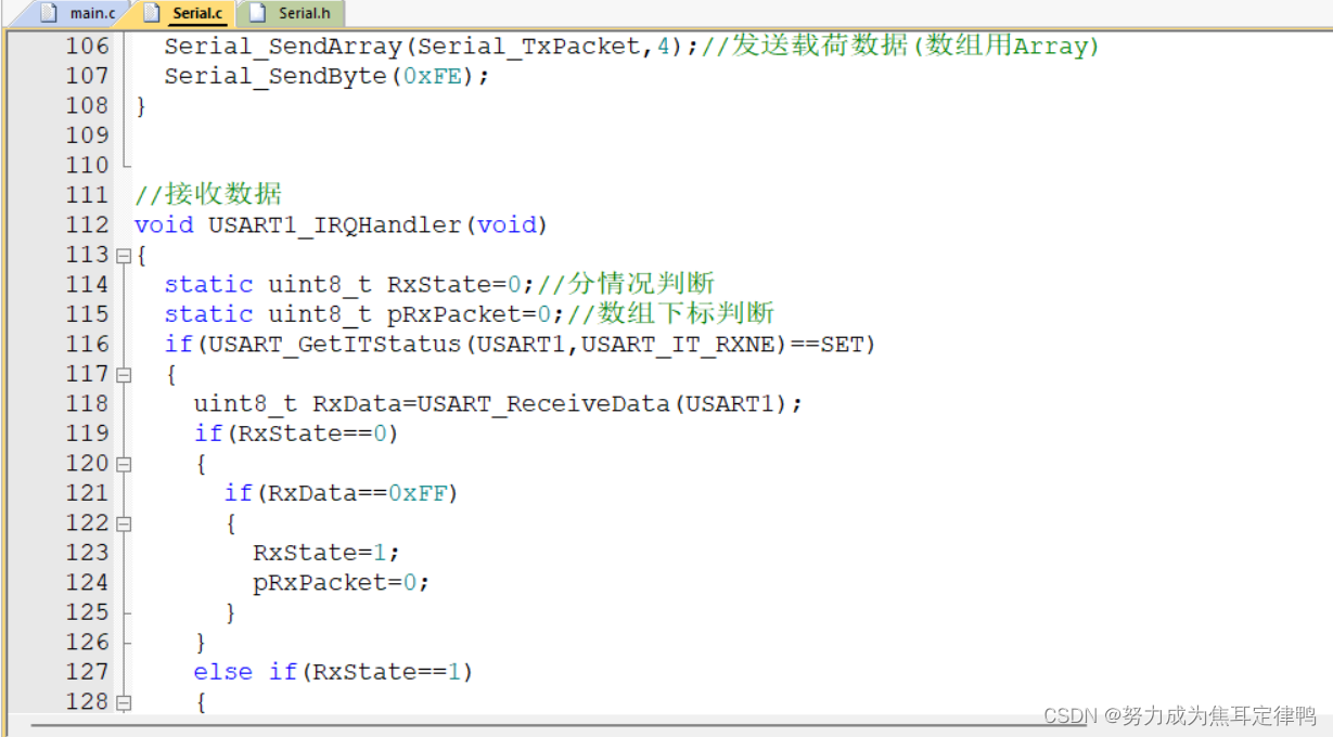 Serial_RxPacket[pRxPacket]=RxData;//将RxData放在数组里,pRxPacket表示存的位置