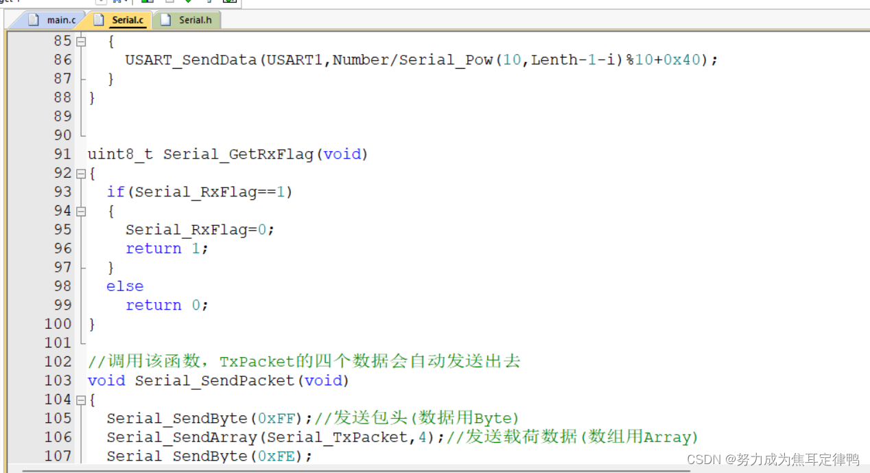 Serial_SendArray(Serial_TxPacket,4);//发送载荷数据(数组用Array)