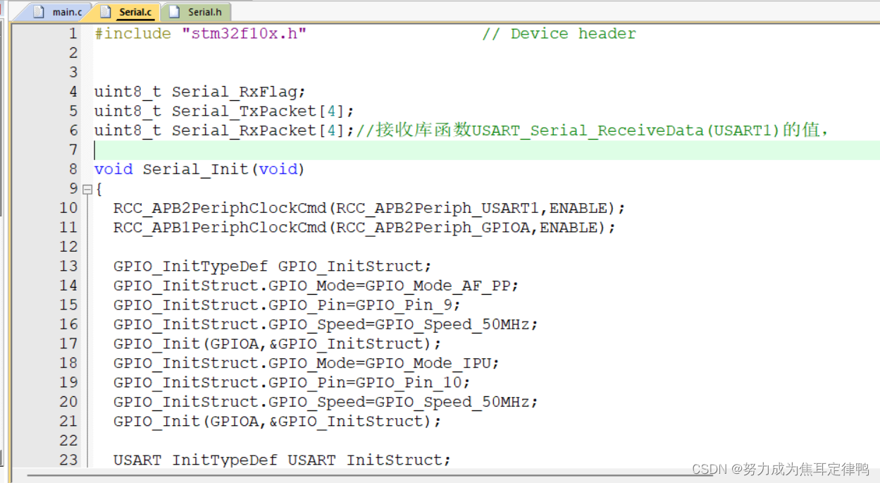 uint8_t Serial_RxPacket[4];//接收库函数USART_Serial_ReceiveData(USART1)的值,