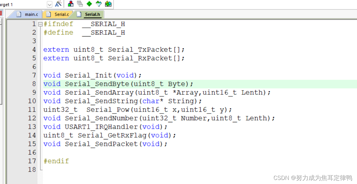 Serial_SendByte(0xFF);//发送包头(数据用Byte)