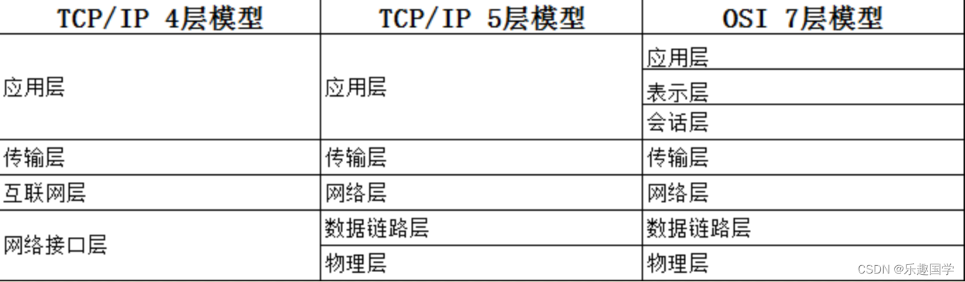 (5)早期的TCP/IP模型是4层结构,在后来的使用过程中,借鉴OSI的7层参考模型,将网络接口层划分为物理层和数据链路层,形成新的5层结构。