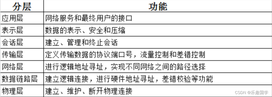 (1)如同一个公司的组织架构一样,网络上的信息传递,也是由不同的层级负责不同的工作任务。