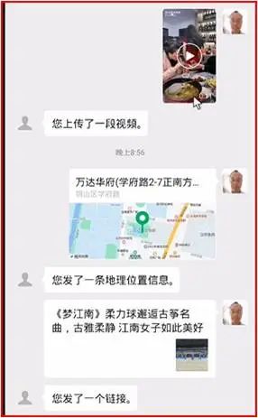 ■ 图2在手机端的微信公众号中接收视频、地理位置、链接等消息并被动回复这些消息的输出结果
