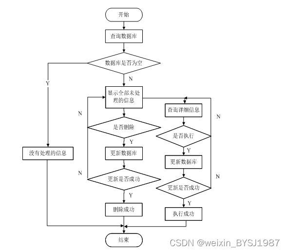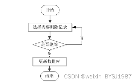 用户选择要删除的信息并单击Delete按钮。系统提示是否删除信息。如果用户想要删除信息,系统将删除信息。系统数据库删除信息。删除信息流程图如图3-5所示。