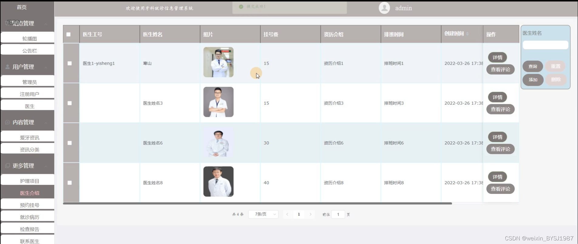 点击搜索医生介绍,输入存在的医生介绍名 |