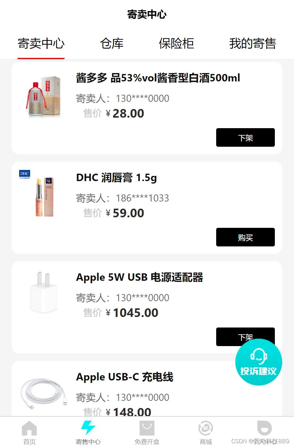 寄售大厅 显示所有用户在寄售的商品,显示寄卖人、商品详情、商品价格,用户购买后金额进入平台账户,等待确认收货后进入卖家平台账号中