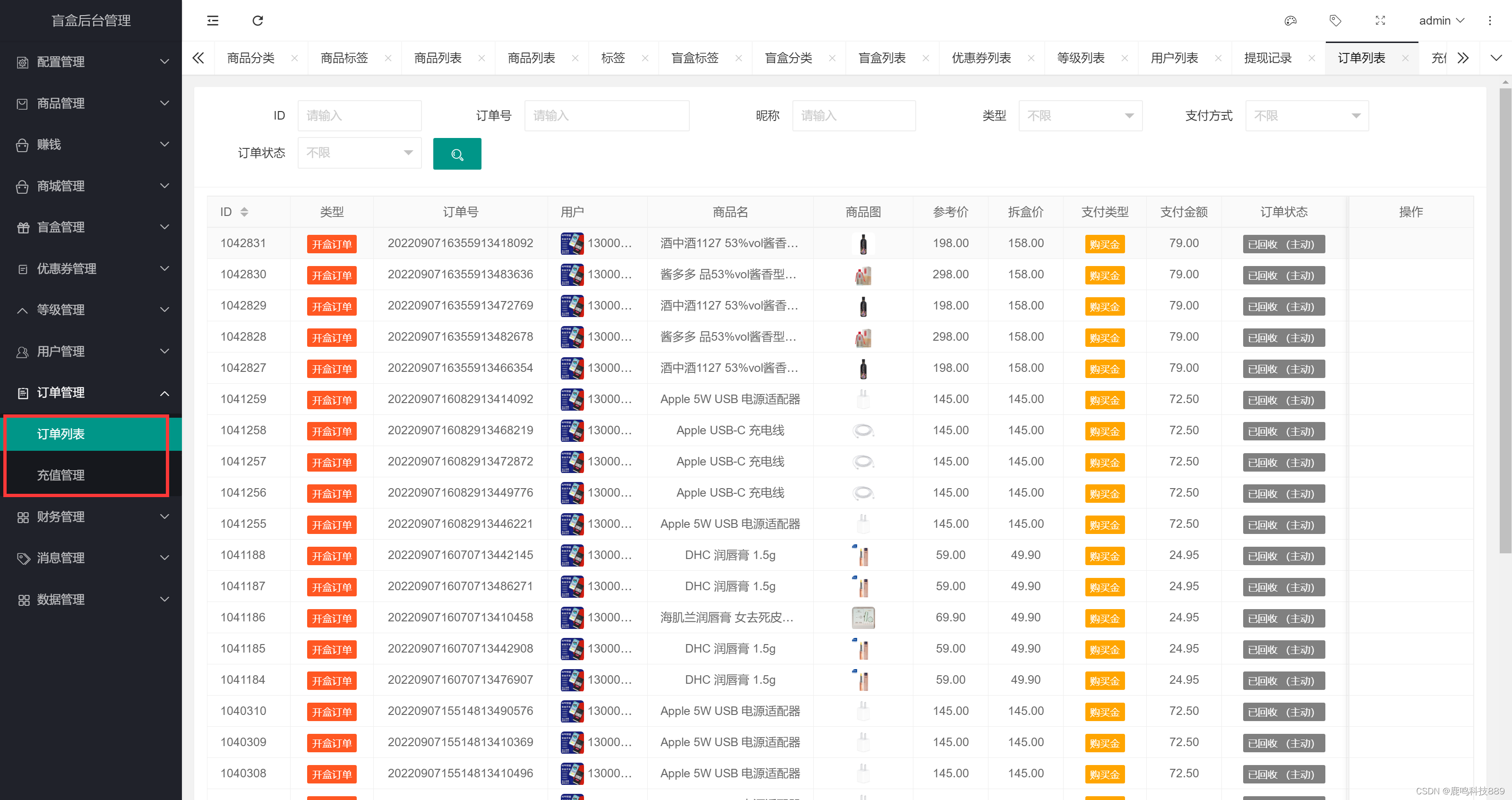 订单管理 开盲盒订单 查看用户开盲盒提交盲盒的订单