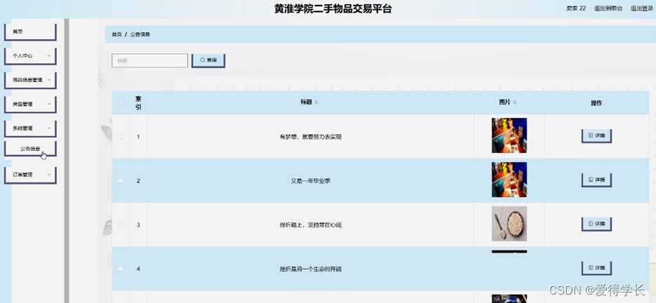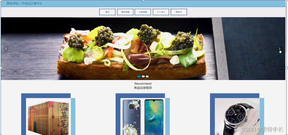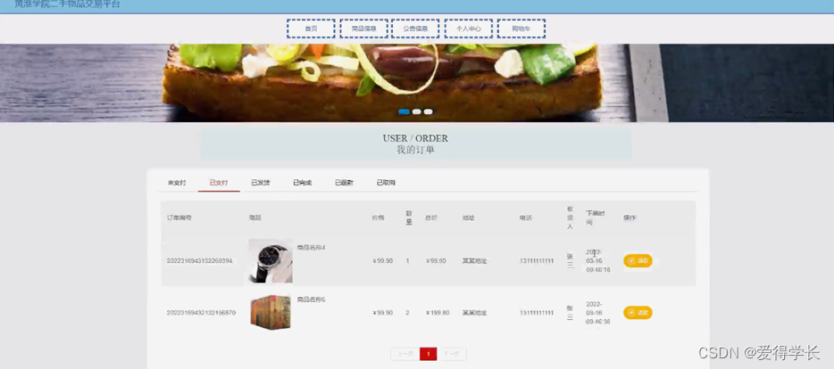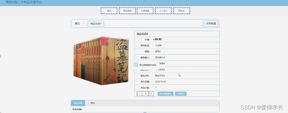 淮学院二手物品交易平台采用ssm框架技术和java语言,基于mysql开发,实现了系统:首页、商品信息、公告信息、个人中心、购物车等功能管理。