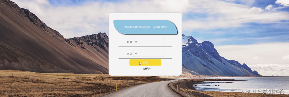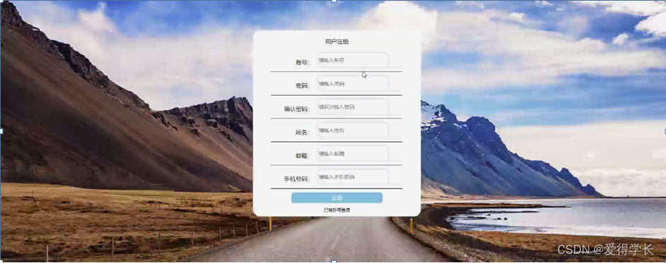 用户注册,用户通过输入账号、密码、姓名、邮箱、手机号码等内容进行注册,注册完通过输入账号、密码进行登录进入系统,如图5-2所示。
