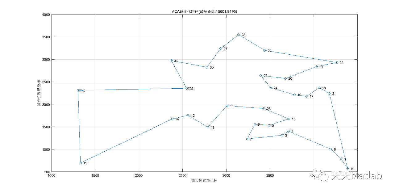 total_length(i)=total_length(i)+D(r(1),r(n));%最终得到第i只蚂蚁在本次循环中所走过的路径长度