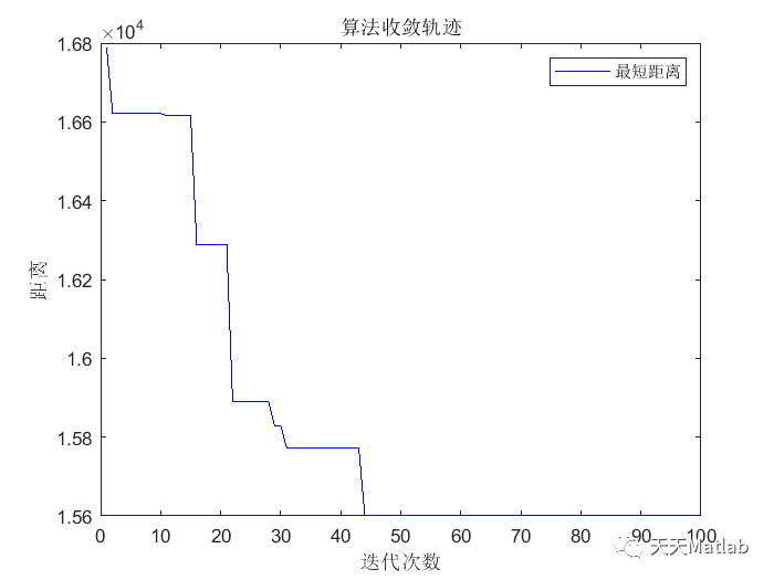 length_best(Nc+1)=min(total_length); %把m只蚂蚁在本次循环中所走路径长度的最小值作为本次循环中最短路径的长度