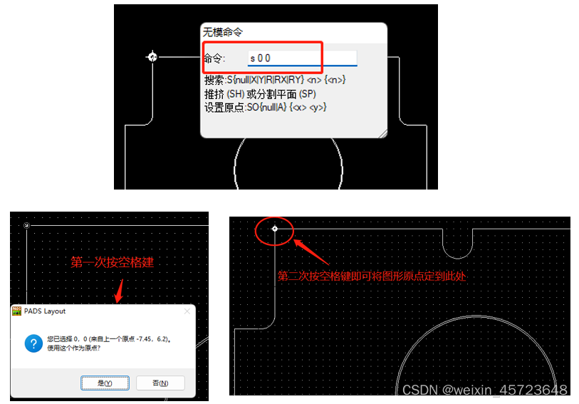 5、输入无模命令《s 0 0》,回车后不要动鼠标,按两下空格键,即可给整个图形设置原点。