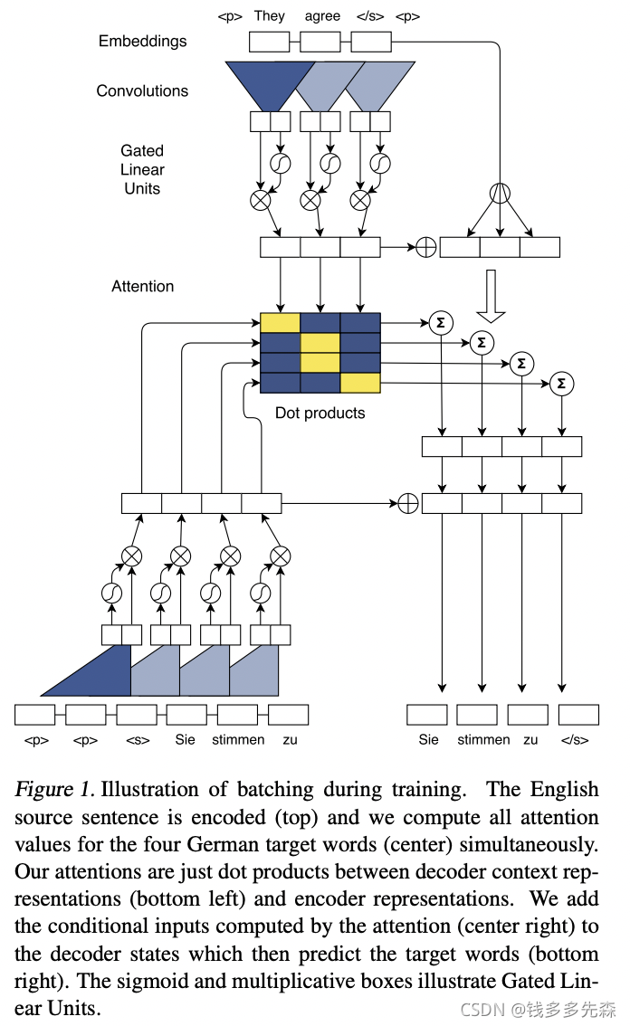 https://arxiv.org/pdf/1705.03122.pdf论文中最主要的结构图,如下所示,最最典型的部分就是对输入数据进行编码时采用的Convolutions,这样: